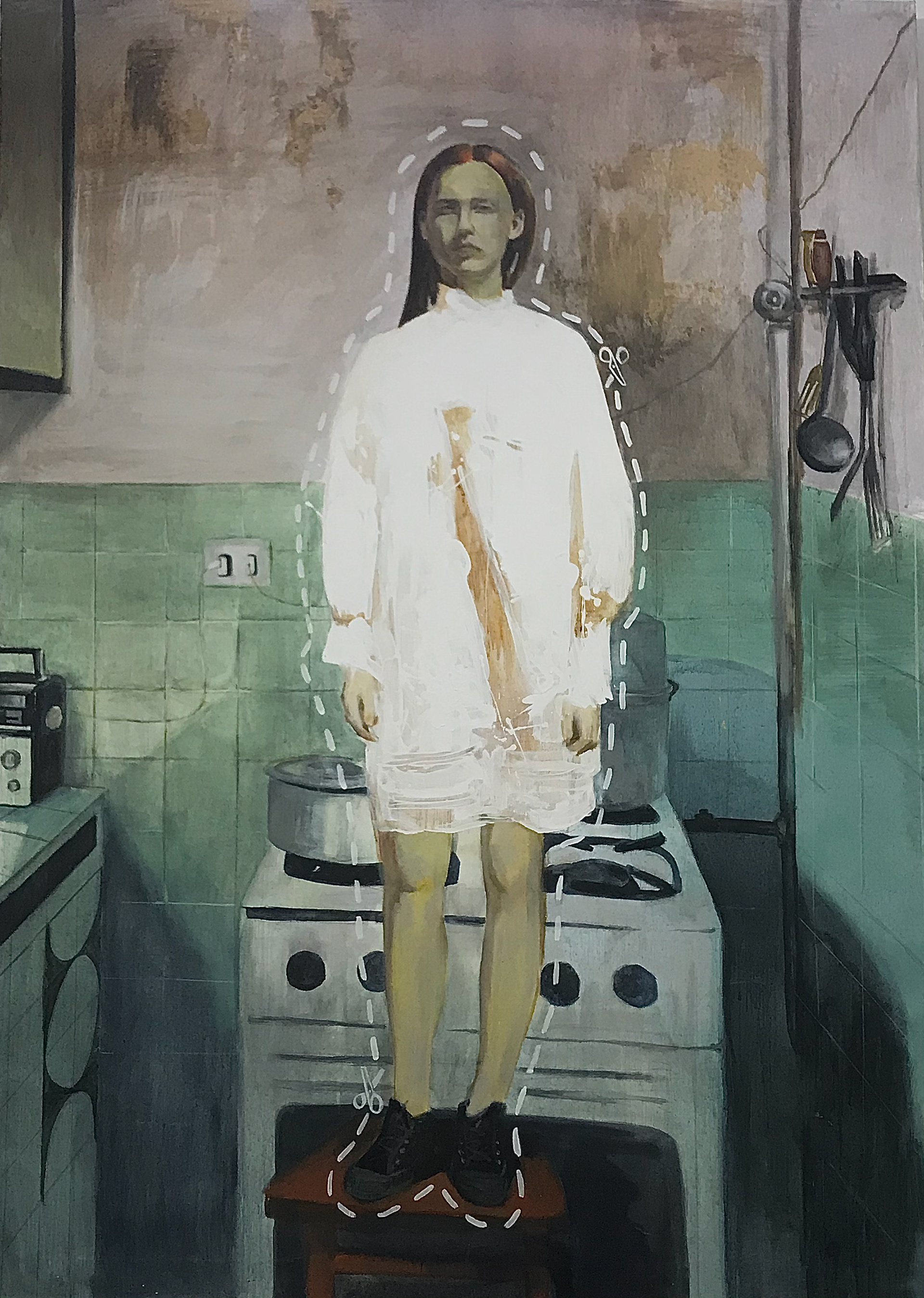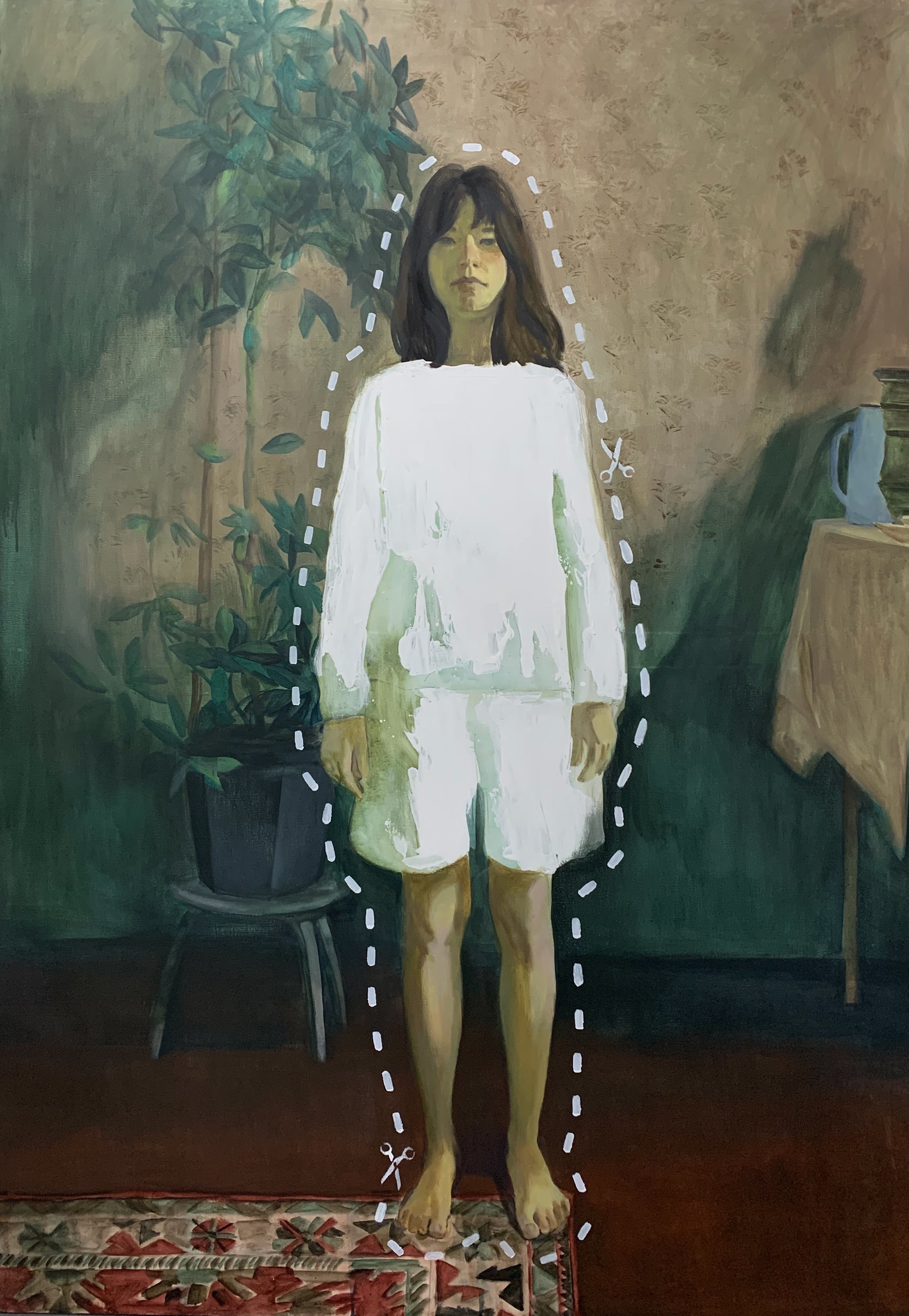 This series explores female identity through portraits situated within familiar domestic environments. The work originated from an observation during a class assignment where fifth-grade students were asked to draw “Mom in an interior.” Although the prompt allowed for countless settings—cafés, museums, offices, studios, gyms—nearly all students chose their own apartments as the backdrop. More strikingly, in almost every drawing, the mother was depicted doing household chores, even though the same interior could have shown her reading, studying, creating, resting, or pursuing personal goals.